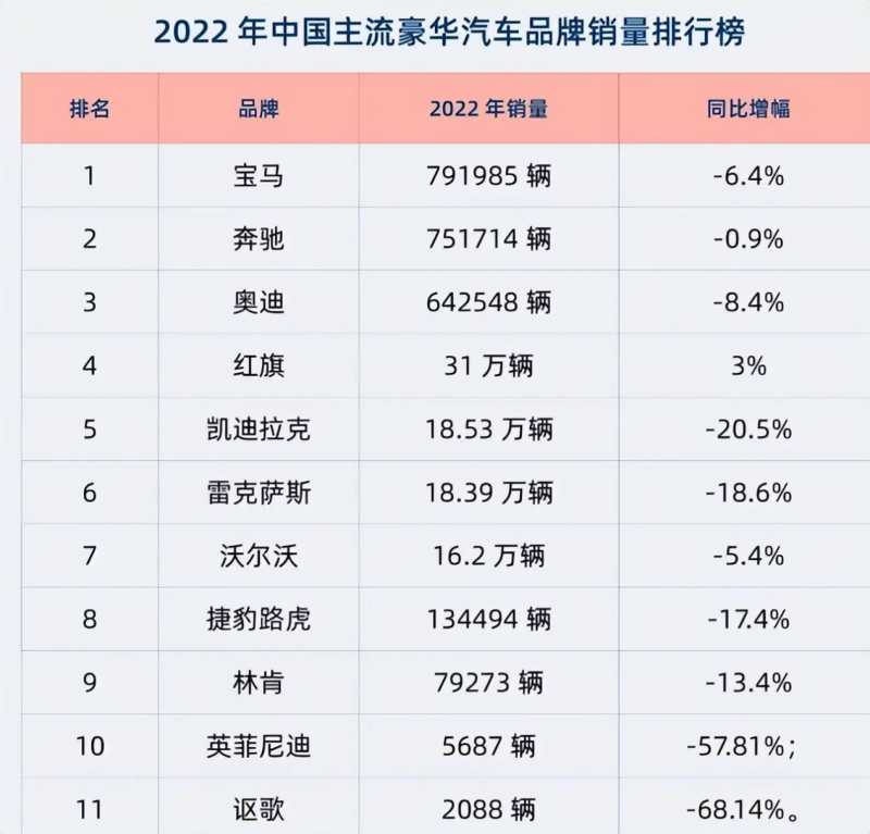 2022年豪华品牌销量前十,竟然只有一家增长,还是我们中国人的