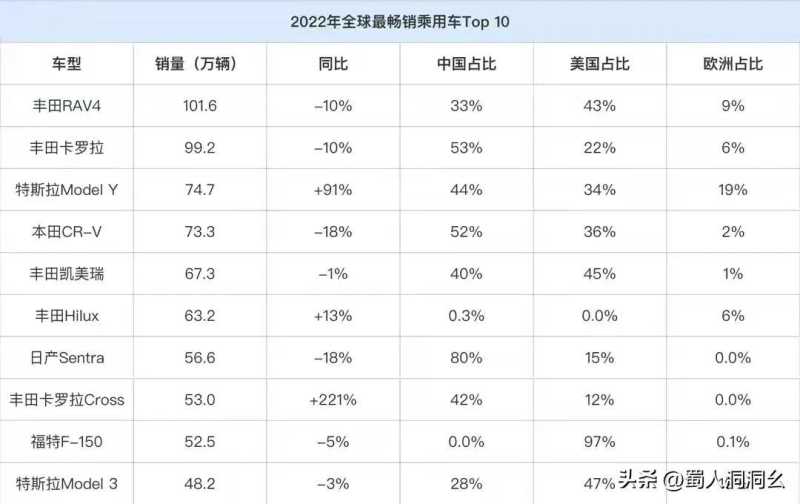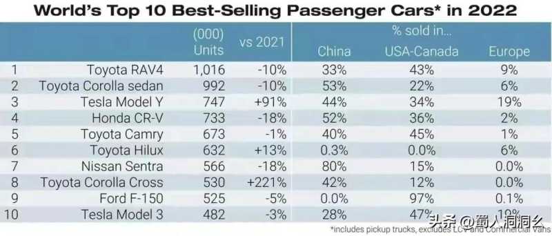 万万没有想到,2022年原来全球销量前10的是这些车,你买对了吗?