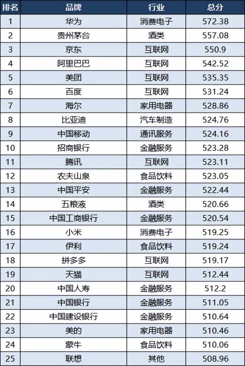 最新品牌排名:美团第五,比亚迪第八,联想第25,洋河第39