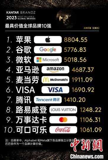 2023年凯度BrandZ最具价值全球品牌10强 凯度集团供图