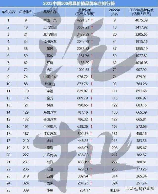 中国500最具价值品牌车企占25席:一汽排首位,理想未上榜