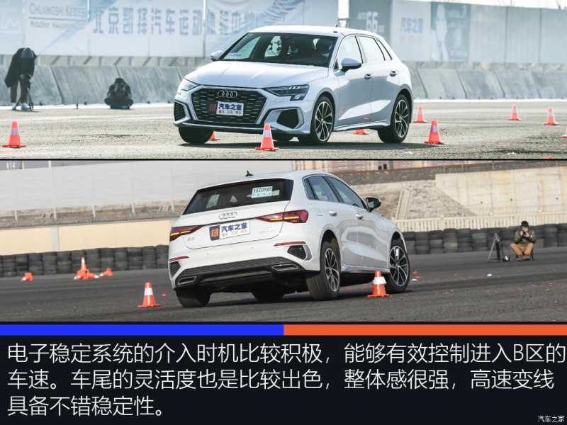 此次的奥迪A3与之前测试过的顶配车型略有差别,主要是轮胎规格上的变化,由18寸变为17寸,然而更厚的胎壁则让车辆在动态响应速度上略有迟缓,但这一点也仅仅是在B区中略有显现,但电子辅助系统也因此变得更为积极,相比同级别宝马1系和MINI,奥迪A3的整体感受更为细腻,最终得到了71.3km/h的测试成绩。