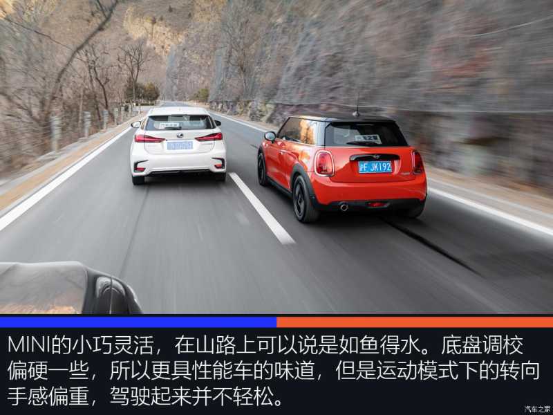 MINI小巧的身材,在高速行驶状态下的感受并不讨喜。不过这也是它最大的杀手锏,摆动方向盘,车头就会按照既定轨道,给你最为直接的响应,只不过这种感觉比较突兀,尤其是在你驾驶过同场几位选手之后。