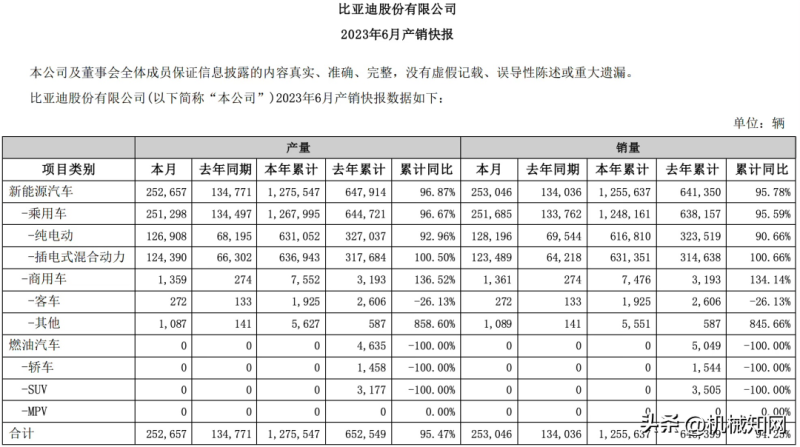 近日,比亚迪发布2023年6月产销快报出炉,1-6月的销量位居全球新能源汽车销售第一,打开中国汽车竞争新格局。