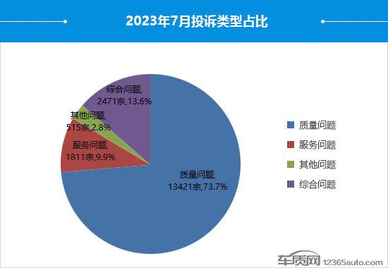 据国内领先的缺陷汽车产品信息收集平台车质网统计,2023年7月车质网共受理车主有效投诉信息18,225宗(其中含5宗针对第三方平台投诉,2宗后装轮胎投诉),创造了车质网成立以来的月投诉量最高纪录,环比上涨28%,同比上涨41.6%。今年1-7月累计投诉量达86,001宗,已接近2019年全年总投诉量。