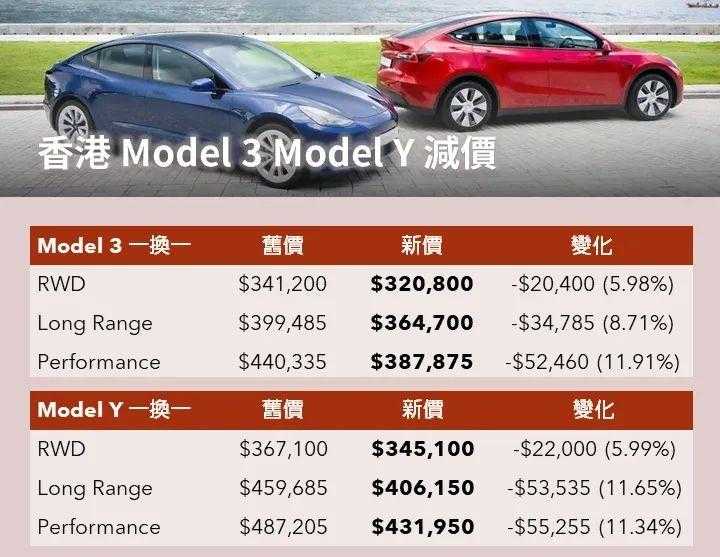 论降价,怎能少今年价格战的始作俑者—特斯拉。有消息称,特斯拉会针对中国香港的车型再次降价,使得特斯拉Model 3和Model Y的售价跟美国市场持平,价格调整幅度最多达14%。