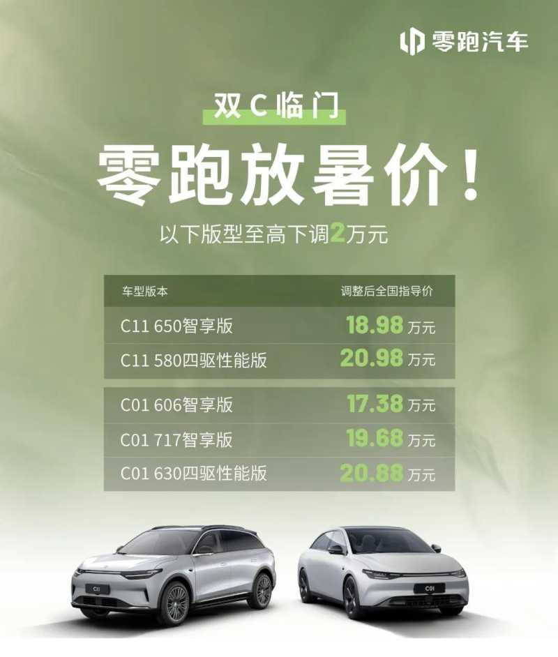 除了上汽大众,零跑汽车也表示旗下车型进行降价促销,而降价对象是C11纯电和C01的中高配版本车型,幅度最高达到2万元。