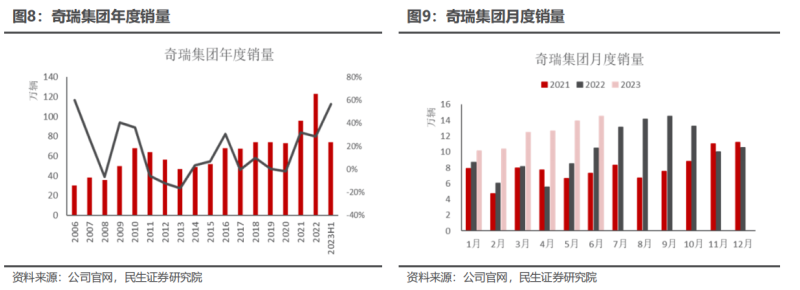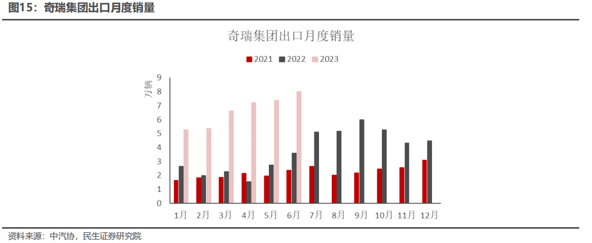 民生证券分析师邵将7月31日研报认为,奇瑞汽车在海外起售价远远高于国内起售价,并且已由输出产品向输出工业能力转变,海外总产能达到20万台/年。奇瑞集团已经打造百万辆级汽车产业链,在全球建立研发基地、KD工厂与服务网点,打造独特销售渠道,进一步助力出口销量持续上行。