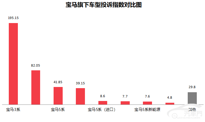本月,宝马品牌仍然排在三位,投诉指数环比翻了近一倍。近几个月投诉一直较低的宝马本月又出现了集中投诉。宝马3系传动轴异响遭到了很多车主的吐槽。投诉指数占比超过了宝马整体投诉指数的四成。与此同时,宝马X3和宝马5系车机减配也遭到了部分车主的投诉。