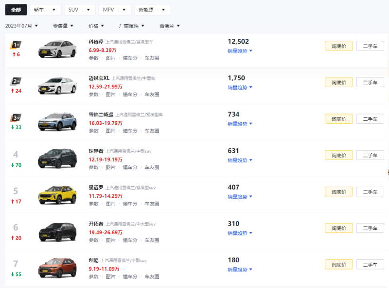 其中,2、3、4月份科鲁泽的销量就攀升到了6816辆、8197辆、10347辆,而来到5、6、7月份,科鲁泽的月销量甚至已经爬升到了10978辆、12268辆以及12502辆新车的销量数据表现。所以至此难道你们还不愿意承认:优惠大的雪佛兰科鲁泽车型,它就是一台好车型吗?
