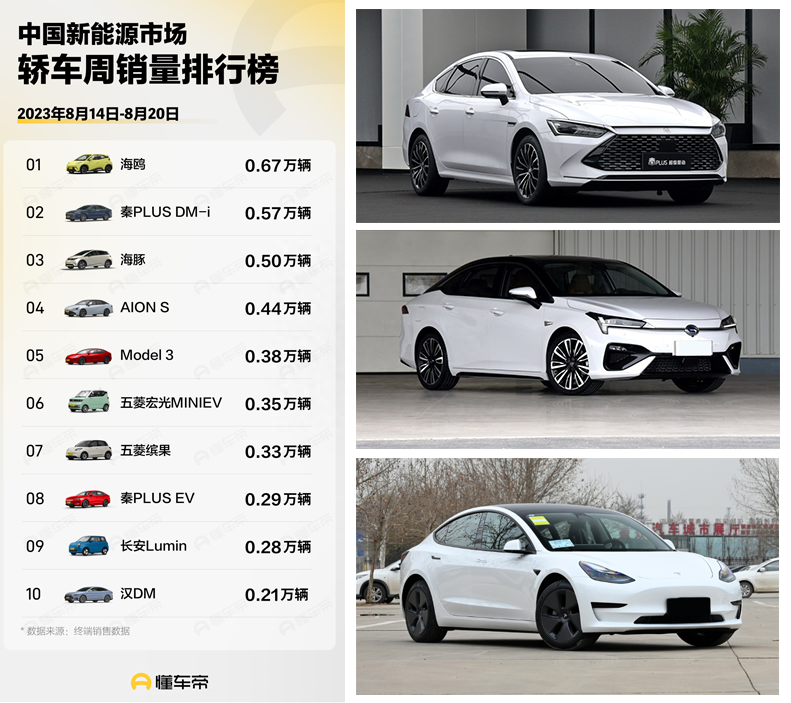 2023年8月第三周新能源汽车销量排行榜出炉(14-20日),这一周的排序有三大看点。