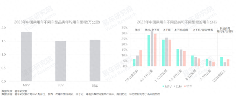 随着兼顾家庭的传祺M8、腾势D9等新MPV的快速涌入与上量,近一年,MPV年均用车里程升至1.84万公里,大幅领先SUV与轿车。未来,随着理想、魏牌等高端品牌,与江淮瑞风、东风风行等商用MPV品牌,加速投放家庭节能MPV,将进一步提升MPV的用车里程,高端家用混动MPV将成为有中国特色车市的新消费热点,也有可能成为继紧凑型SUV之后中国品牌的新增长点;