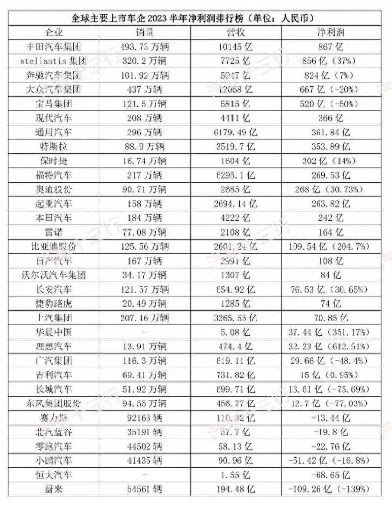 相比之下,作为中国2023上半年经营质量最好的车企,比亚迪股份109.54亿元人民币的净利润位列雷诺汽车之后,仅排在全球主要上市车企的第15名,这充分说明,中国车企经营质量与全球汽车企业仍存在不小差距。