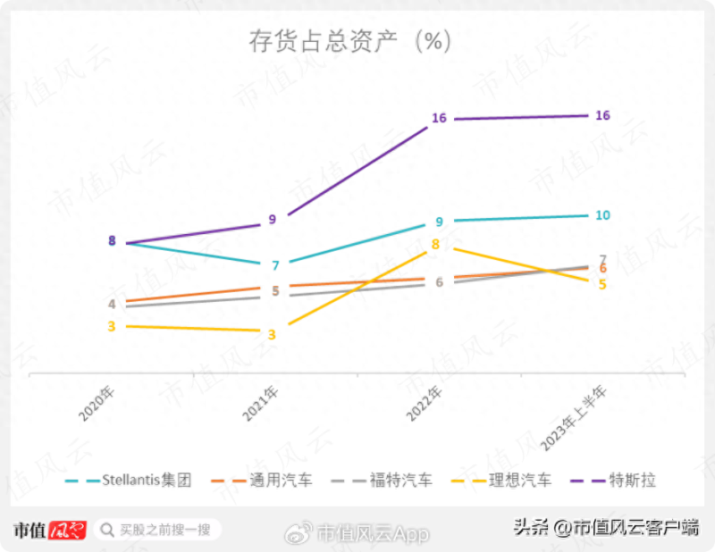 因物流受阻,Stellantis出现库存积压。截至2023年H1,公司存货占总资产比例达10%。