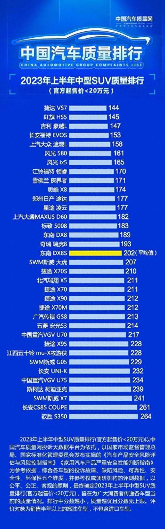 重点重申的是,中国汽车质量排行榜可不是什么“野鸡榜”,它是由中国汽车质量网依托投诉大数据平台,以国家相关部门的颁布的评估标准为参考依据,综合各车型的投诉故障、缺陷风险、可靠性、安全性、环保性五个维度,并参考权威调研机构的评测数据,做出的公平、公正、客观的质量排名。榜单中综合评价分数越小,代表该车型质量越好。所以这份权威榜单,对于咱们普通消费者而言,具备重要的参考意义。(PS:文末会附上详细的质量排行榜单)
