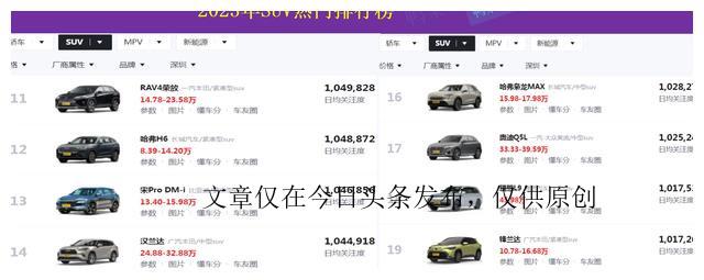 无论您是喜欢高排名SUV还是更注重性价比的购车者,这份排行榜都为您提供了宝贵的参考。