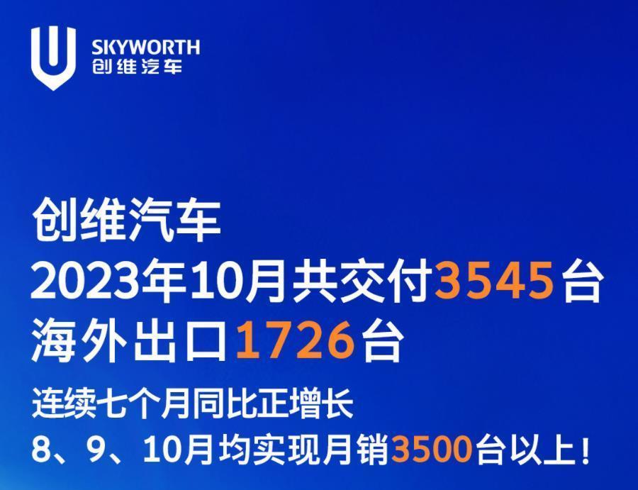 这款车型以其卓越的竞争力吸引了众多消费者的青睐。智己汽车目前处于产能提升的阶段,预计11月的产量将进一步提升,届时市场将见证智己汽车的“量变”。创维汽车是一家跨界造车企业,其10月交付了3545辆车。与海外市场销量相比,国内市场销量相对一般。
