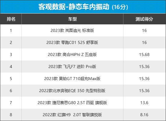 从榜单排名来看,岚图追光和零跑C01再次以满分成绩夺魁,可见这两款车型非常注重车内驾乘人员的舒适性体验。值得注意的是,红旗H9在该测试环节再次败北,其在各个测试部位的振动数值明显偏高,即便与车质网测试过的所有燃油车型相比,也处于垫底的位置,作为一款定位高端的自主品牌旗舰车型,在关乎车内乘员舒适性的测试环节出现这样的结果,令人有些意外。
