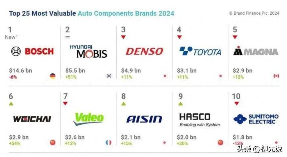 2024汽车零部件新排名:第一名价值超千亿,中国2家挤进世界前十