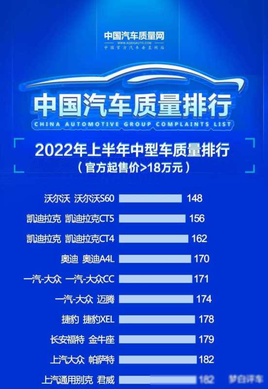 官宣!质量领先的十大B级车:CT5亚军,迈腾第六,君威帕萨特