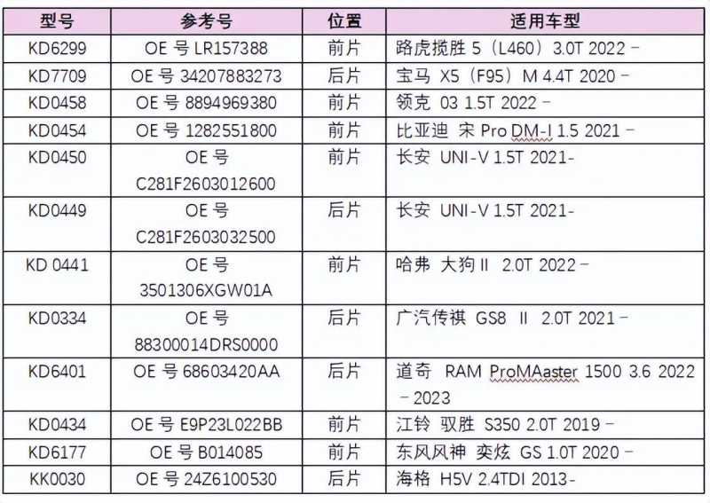 戈尔德一直紧跟市场发展脚步,加大研发投入,推出更具创新性和竞争力的产品,以满足市场的不断变化需求。5月,共推出8个新品零件号,覆盖4款车型,详细如下: