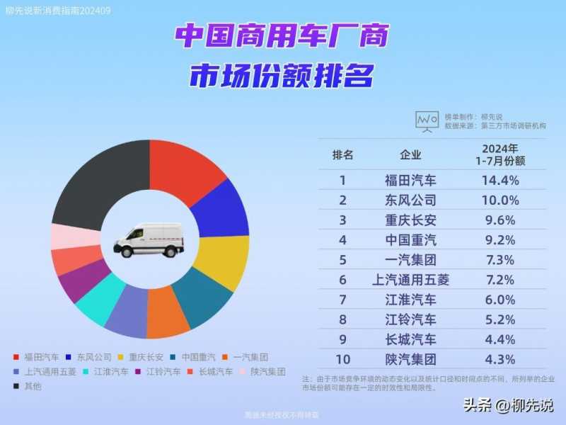 中国商用车龙头出现!2024年行业新排位:五菱第6,重庆长安第3