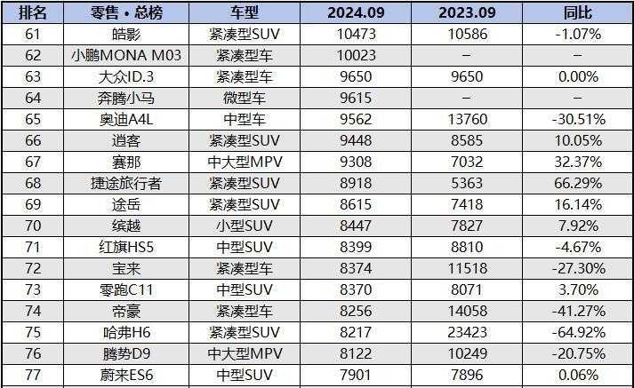 市场竞争残酷性,9月销量榜单中体现得淋漓尽致,一些品牌凭借着强大产品力和品牌影响力,而另一些品牌则面临着巨大压力,甚至被市场淘汰出局,这既是市场规律体现,也是优胜劣汰必然结果