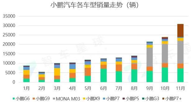 另一方面,MONA也为后续上市的P7+搭起了基础盘,在能打的产品力和够有魄力的定价下,P7+延续了M03的成功,终于让小鹏有了两个支撑车型,摆脱了此前每出一款新车,前车就“查无此人”的尴尬。