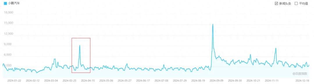 小鹏汽车的声量也在MONA正式上市的当天达到顶峰,后续的平均关注度也上了一个台阶。