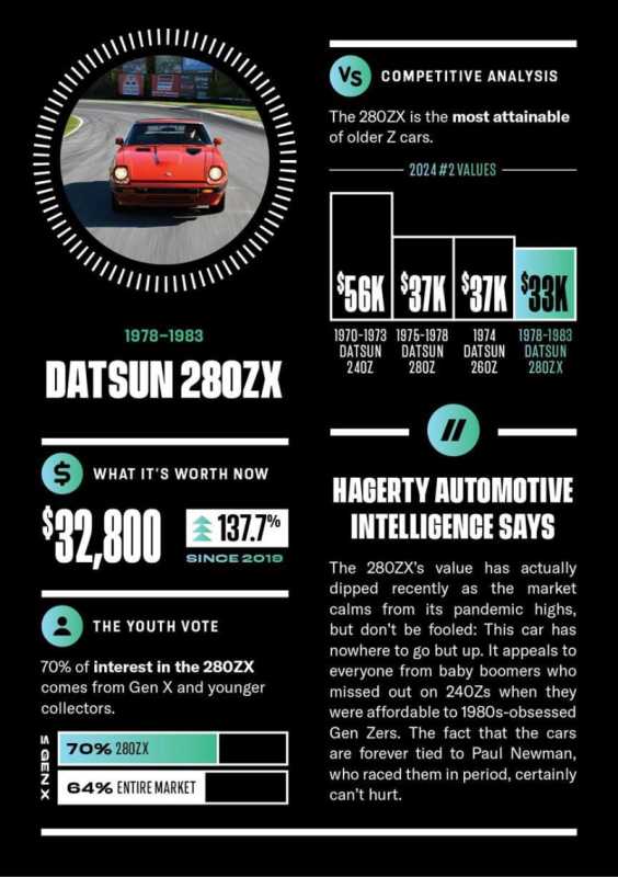 近年来,全世界的爸爸们都把注意力集中在240Z上,因此价格也水涨船高,以至于早期的Z型车几乎无法被年轻的爱好者所接受。一辆不错的车很容易就能卖到5万美元以上。我们对此无可辩驳——它们都是有史以来最棒的汽车。但对于下一代爱好者来说,现在280ZX最能实现Datsun/Nissan最初的使命,即以可承受的价格提供性能和令人惊讶的精致。