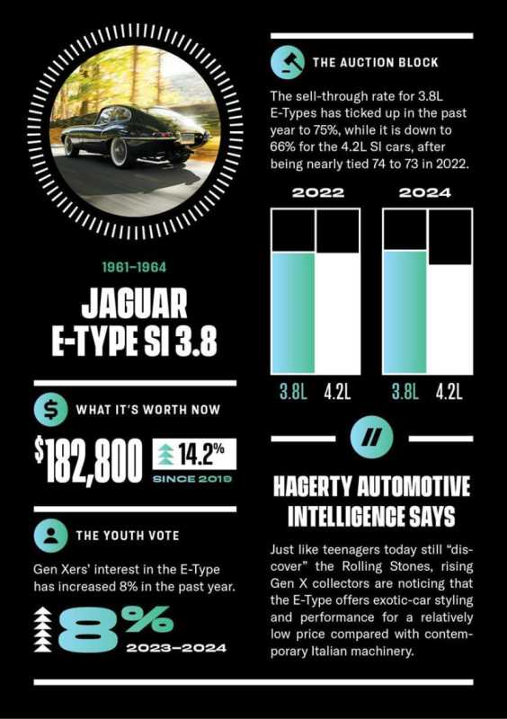 如果说有一件事是大多数汽车爱好者都同意的,那就是如果价格合适,他们会拥有一辆E-Type。E-Type天生就具有诱惑力,从捷豹揭开面纱的那一刻起,它就让1961年日内瓦车展的过道上的人心醉神迷,不久之后它就驶入纽约,引发了一场预示着披头士乐队到来的喧闹声。这是英国自五月花号以来最大的出口产品,用《Road&Track》杂志的亨利·曼尼三世的话来说,它是“人类已知的最伟大的松饼捕手”。