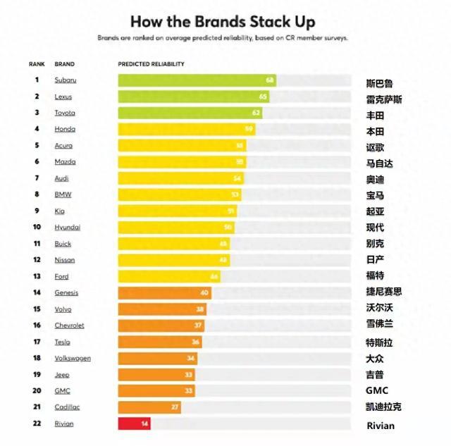 - 美国《消费者报告》最佳汽车品牌榜单公布:斯巴鲁第一 特斯拉进入前十