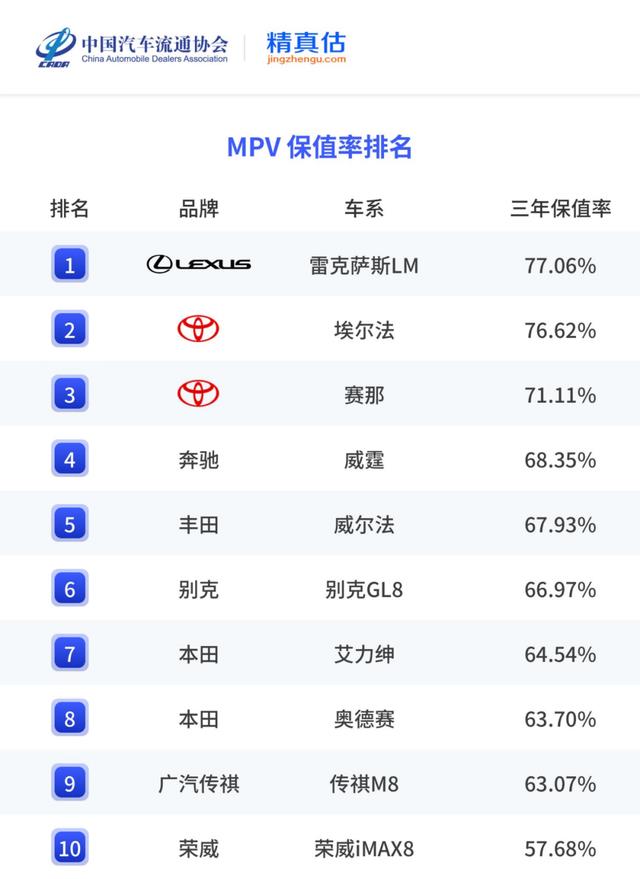 别乱选!2025上半年最保值的十大MPV:埃尔法丢冠,赛那领先GL8