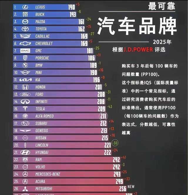 其实,汽车世界很广,各家品牌表现差别挺大。有的品牌一直很稳,有的却起起落落。榜单就是反映这种事情,用每100辆新车出现的问题数量来说话。分数越低,问题越少,这车就更让人放心。