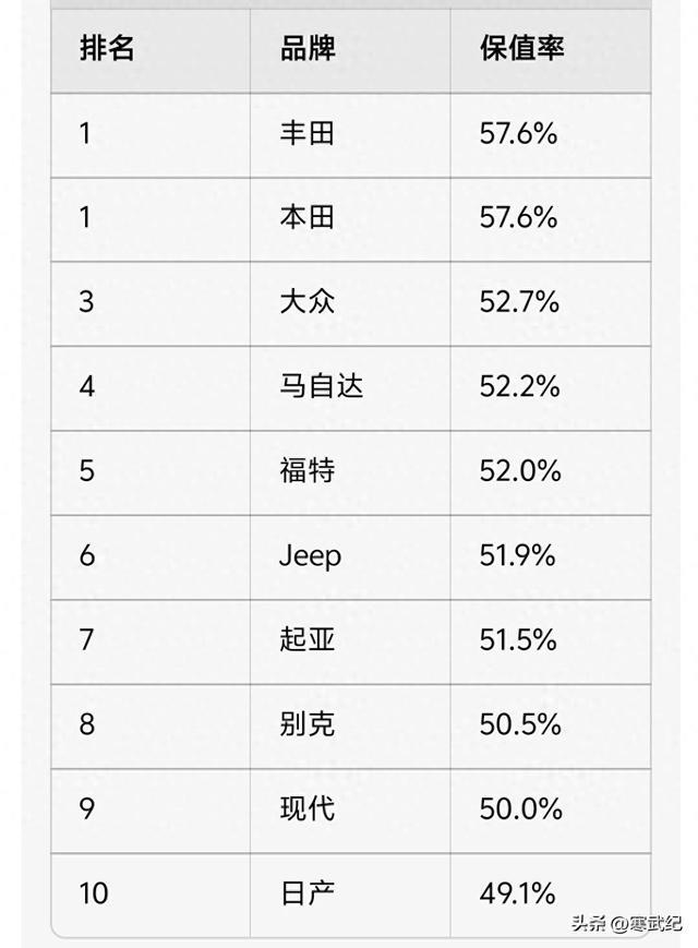 大众、马自达等品牌紧随其后。值得注意的是,有些品牌虽然新车靠大幅降价换销量,但二手车价也撑不住了,保值率直接垫底。这说明,一时的便宜可能会让将来卖车时“肉疼”。