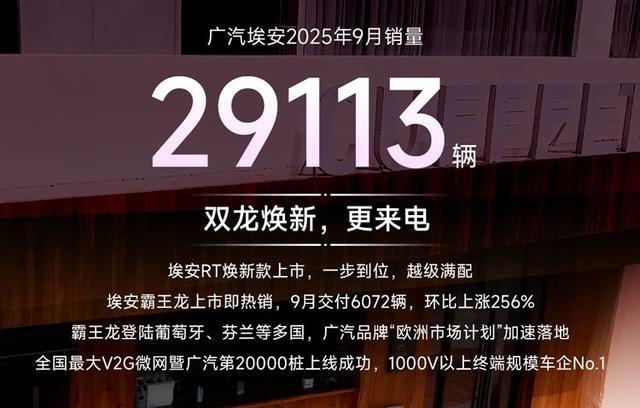 广汽埃安9月销量29113台,这其中AION V霸王龙9月交付6072台,环比上涨256%。埃安RT 9月份也换新上市,作为改款车型,其全系标配宁德时代电池组,低价格+超强实用性也让它成为高性价比家用之选。