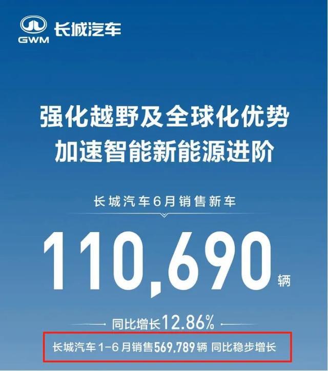 今年1-6月,哈弗品牌累计销量32.37万辆,同比增长8.89%;长城皮卡累计销量9.36万辆,同比增长4.01%。乘联会数据显示,长城皮卡在今年1-6月的表现,继续坐稳国内皮卡第一位置。