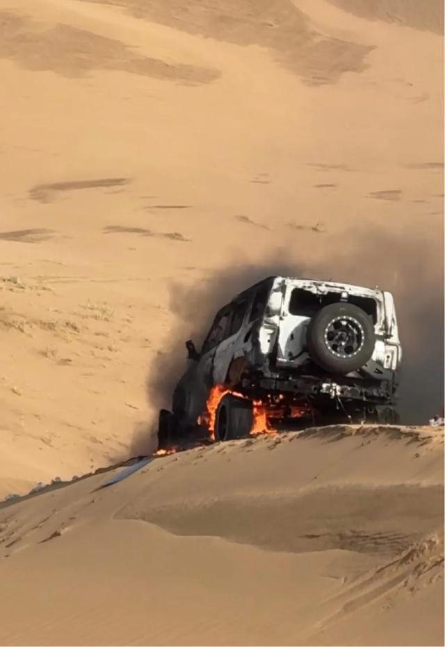 只不过,阿拉善热情还没有感染消费者,一起越野车起火事件却引发了广泛的关注。根据“车友公社”发布的视频,9月28日,一辆越野车在内蒙古阿拉善沙漠被烧的几乎只剩车架子。有网友结合多个视频,根据车架结构与外观特征,推测涉事车辆为长城旗下的坦克500。