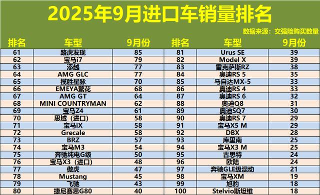 有点惨!9月进口车销量排行:第一不可撼动,GLE亚军,奥迪Q7第11