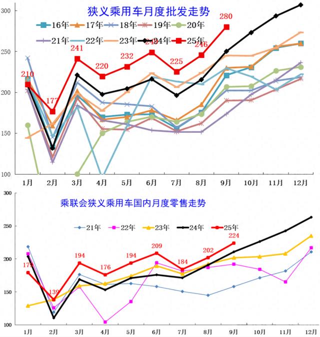 而从零售来看,224万辆的销量,也是历年来9月份的最高水平,但224万辆和280万辆之间56万辆的差距,一方面被出口消化,另一方面则变成了经销商的库存,为四季度的冲量做了充足的准备。