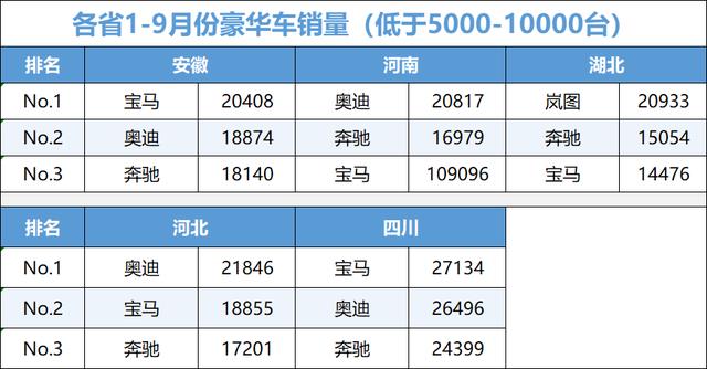 2-3万级别的基本都是人口大省,很有意思的除了湖北本地生产的岚图,其他全部被BBA占据。