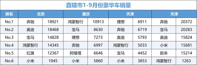 BBA仍占据主导地位,但重庆生产的华为问界占据地理优势,理想竟然在天津也占据了第一。其次小米汽车虽未进前三,但未来增长趋势明显。