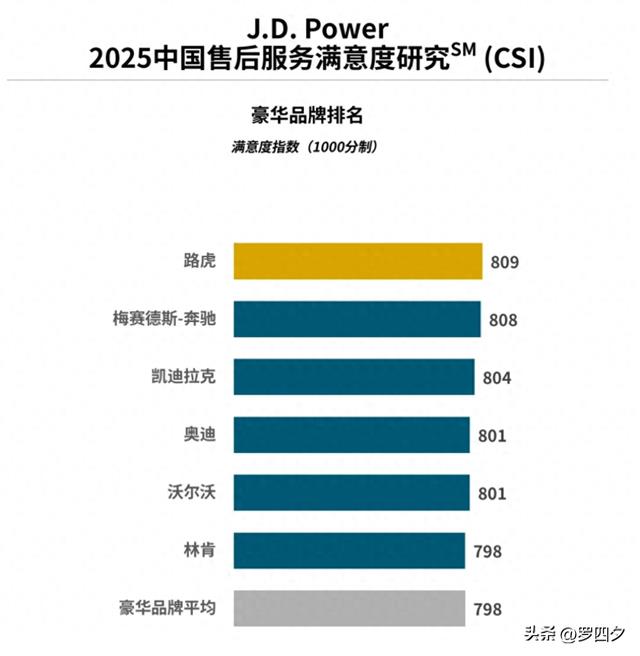 在豪华品牌阵营中,路虎以809分位居榜首,梅赛德斯-奔驰以808分紧随其后,凯迪拉克以804分排名第三。这些评分是基于服务设施、服务团队、接待与诊断、服务价值、服务质量和服务预约六大因子综合评定。