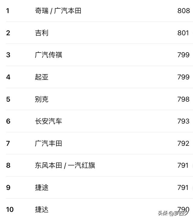根据J.D. Power 2025年最新研究,主流传统燃油车品牌中,奇瑞和广汽本田以808分并列第一,成为售后服务满意度最高的品牌。吉利以801分位居自主品牌第二及主流品牌第三,广汽传祺则以799分排名自主品牌第三。