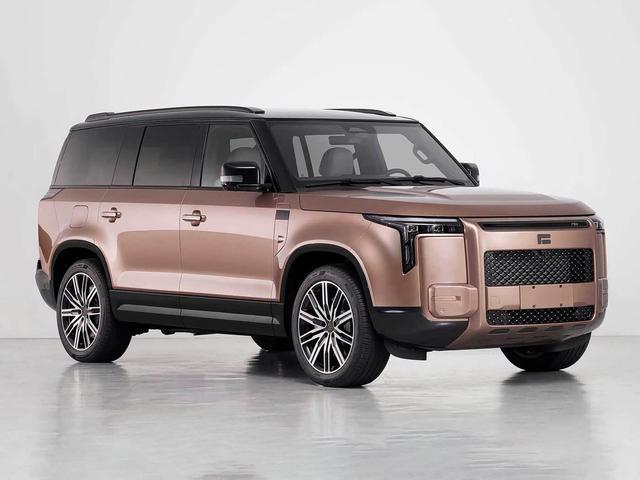 新车车长依旧超5米,轴距超3米,提供6/7座版本布局,外挂式备胎设计,整体造型延续极石01的风格,也可以看做是家族式设计。皇家定制版更是有专属的粉白和哑光金双色配色,还有专属logo和轮毂造型,强调氛围感。