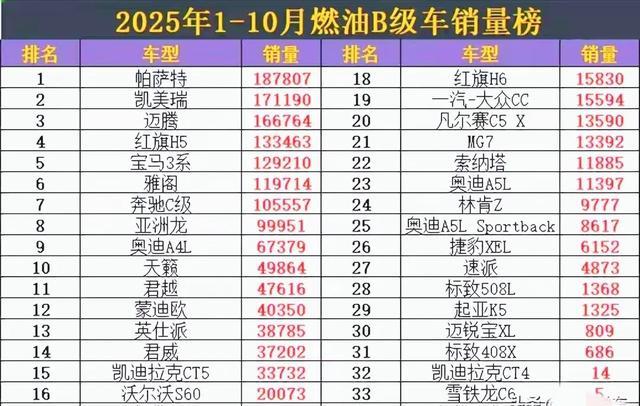 - 得B级车得天下!1-10月销量,凯美瑞丢冠,红旗H5第4,索纳塔第22