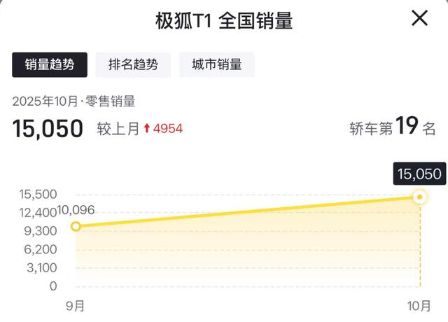 9月11日上市,当月销量破万,10月份破1.5万辆,销量直逼比亚迪海豚。极狐T1可以说是近期最令人意外的一个爆款。尤其是考虑到其A0级纯电小车的定位,面临着星愿、海鸥、缤果等强大竞品,这个销量成绩就更难得了。