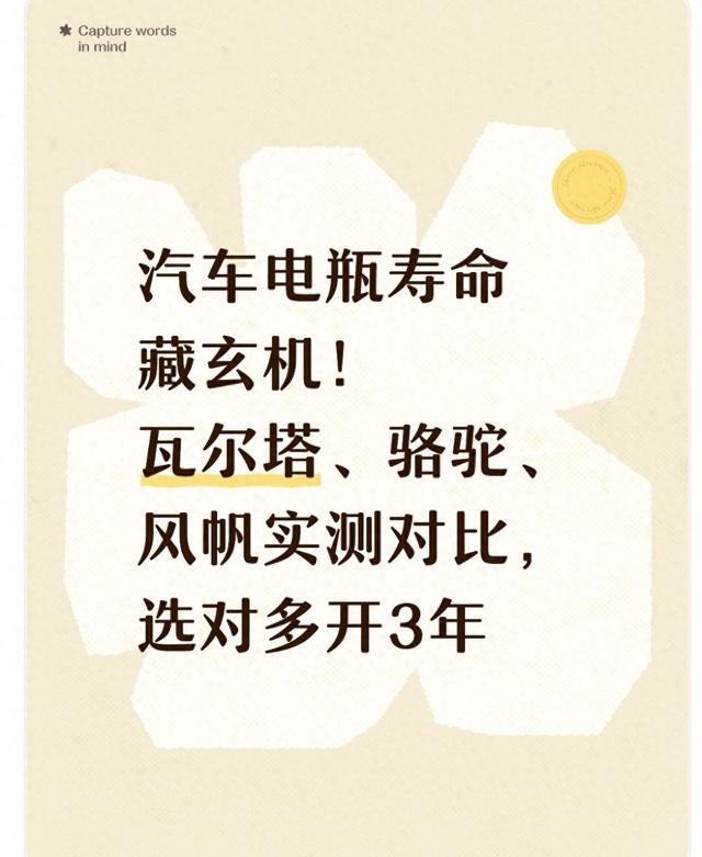 汽车电瓶寿命藏玄机!瓦尔塔、骆驼、风帆实测对比,选对多开3年