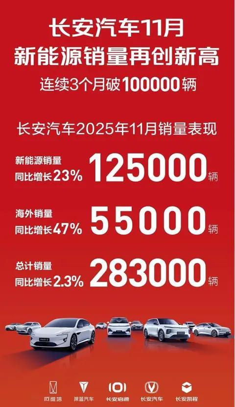 长安汽车前11个月累计销量为265.8万辆,完成300万辆年度目标的88.6%。其新能源车型前11个月累计销量约99.5万辆,同比增长54.66%。