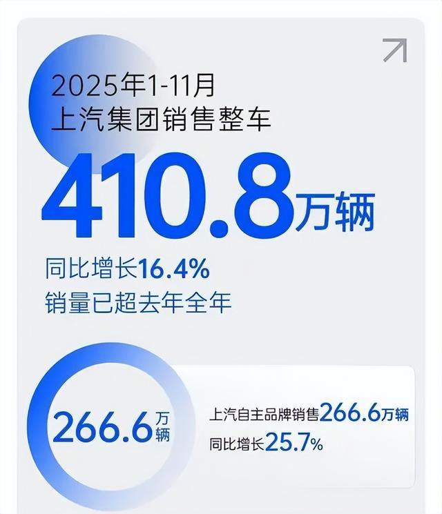 从目标完成度看,比亚迪已完成全年460万辆目标的约90.9%,上汽集团则完成了450万辆目标的约91.29%。两家的竞争格局反映出不同发展路径的交锋。比亚迪依靠全系新能源产品和垂直整合的供应链优势,而上汽集团则采取“燃油+新能源”双线并进的策略。